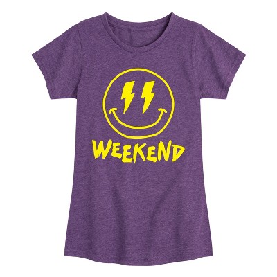 Girls' - Instant Message - Weekend Smile Face Fitted Short Sleeve Graphic T-Shirt