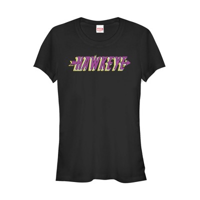Juniors Womens Marvel Classic Hawkeye Title T-Shirt