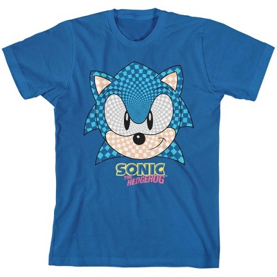 Sega Sonic the Hedgehog Checkers Face Youth Royal Blue Graphic Tee