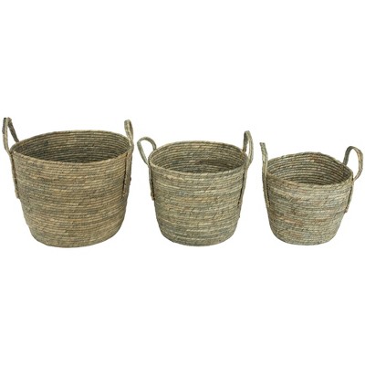 Northlight Set of 3 Gray Tall Seagrass Storage Baskets with Sewn Zig Zag Accents 13"