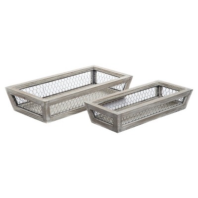 Small Vintage Grey Wall Mount Chicken Wire Basket Set/2