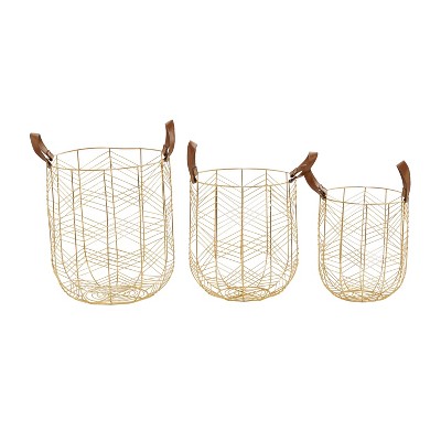 Set of 3 Large Metal Storage Baskets Gold - Olivia & May: Glam Round Floor Decor, Universal Toy Blanket Holder