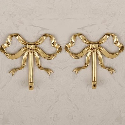 XINGHANZHENXUAN 2 Pcs Brass Bow Wall Hooks ¨C Gold Multi-Purpose Hangers for Towel/Door, Christmas Wall Decor for Bathroom/Living Room/Kitchen