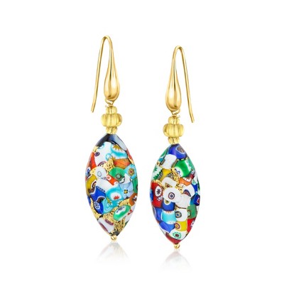 Ross-Simons Italian Multicolored Murrine Murano Glass Oval Bead Drop Earrings in 18kt Gold Over Sterling