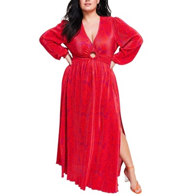 Women's Plus Size Abbigail Split Maxi Dress - red | CITY CHIC