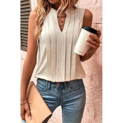 Attraco Women's Sleeveless Split V-Neck Pleated Casual Tank Top Summer Shirts