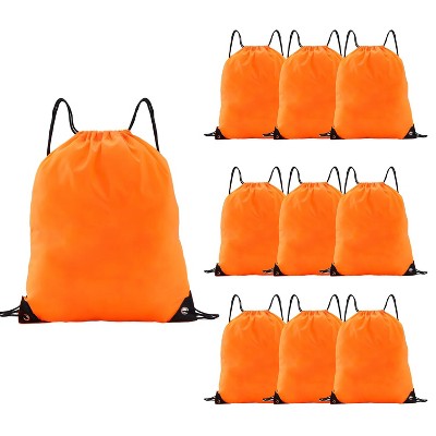 Narwey Drawstring Backpacks,10 Pack — Lightweight Drawstring Bags, Gym Sack for Sports, Daily Use & Travel (10, Orange)