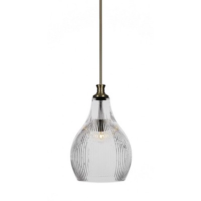 Toltec Lighting Carina 1 - Light Pendant in New Aged Brass with 12.25" Clear Ribbed Shade