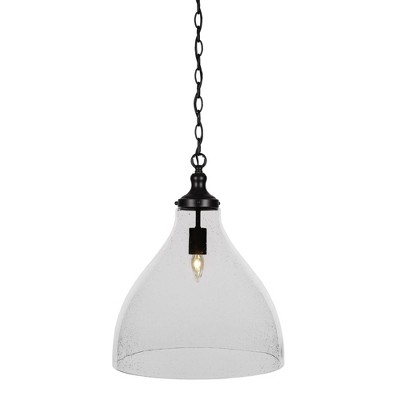 Toltec Lighting Juno 1 - Light Pendant in Matte Black with 16" Clear Bubble Shade