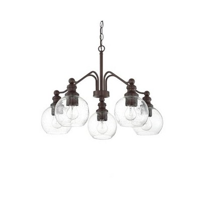 Sunset Oriana 5 Light Chandelier, Clear Seeded Glass Globe Shades, Provincial Bronze Finish