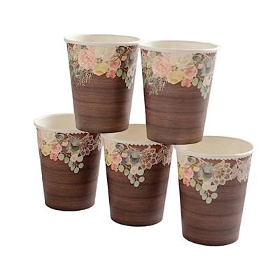 Home Collection Pack of 24 Brown Rustic Wood Print Paper Cups