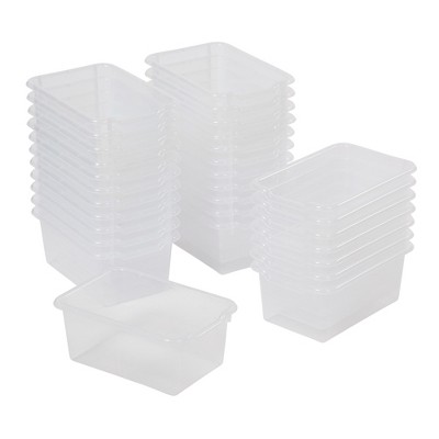 Sterilite Medium Shelf Bin Organizing Plastic Container, Home Kitchen or Office Storage Tote, Open Top Basket with Handles, 18 Pack, Clear