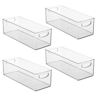 Plastic Stackable Pantry Bin with Handles, Set of 4, Clear, Made in USA