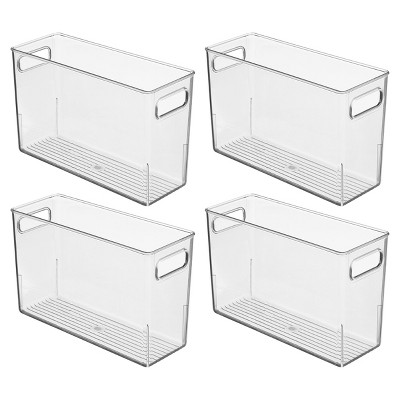 Sterilite Narrow Shelf Bin Organizing Plastic Container, Home Kitchen or Office Storage Tote, Open Top Basket with Handles, 12 Pack, Clear