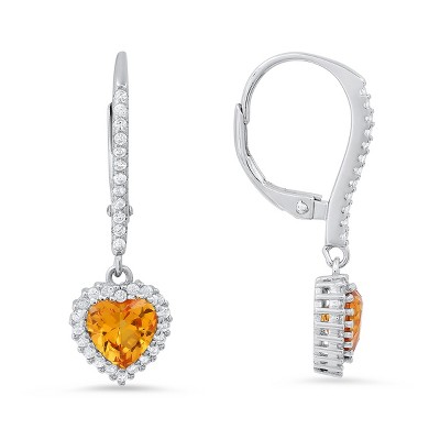 Sterling Silver Heart-cut Birthstone CZ Halo Leverback Earrings