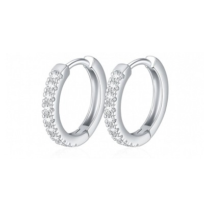 Guili Rhodium Plated Round Cubic Zirconia Hoop Earrings Featuring a Sophisticated and Classic Design Perfect for Modern Jewelry Enthusiasts