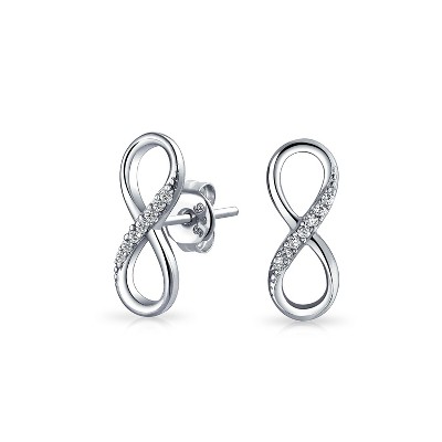 Bling Jewelry Romantic Love Knot Symbol Infinity Stud Earrings Rose Gold Plated .925 Sterling Silver