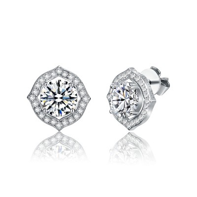 Slickblue Women’s Brilliant Cubic Zirconia Earrings, Rhodium Plated with Clear Round Stones, 1.2 Carat, Disc Post Back