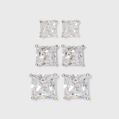 Black Bow Jewelry 6mm Square Princess Multicolor Cubic Zirconia Earrings in 14k Gold