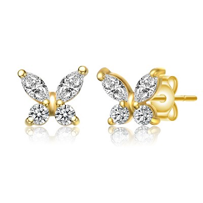 Guili Sterling Silver 14K Gold Plated Marquise CZ Butterfly Stud Earrings, Elegant & Dazzling for Everyday Wear & Special Occasions