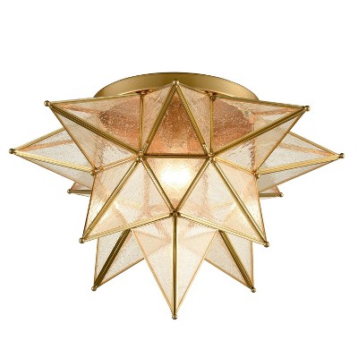 Claxy Brass Moravian Star Ceiling Light Seeded Glass 18-Inch