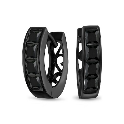 Bling Jewelry Set of 2 CZ Hoop Huggie Earrings with Milgrain Edge in Silver Gold Plated