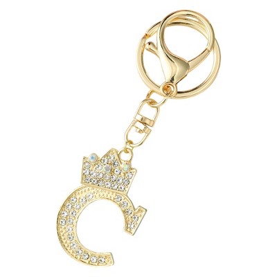Unique Bargains Diamond Crown Keychain with English Letters Champagne 1 Pc