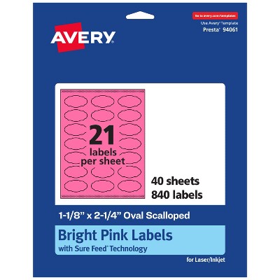 Avery Bright Pink Paper Labels, 1-1/8" x 2-1/4" Oval Scalloped