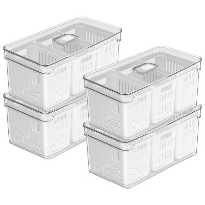 iDesign Stackable Fridge Organizer Bins with Lids - Set of 3 - Clear