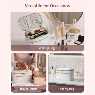 Large Capacity Travel Makeup Case Organizer with Handle and Divider. Portable Cosmetic Toiletry Bag for Women and Girls