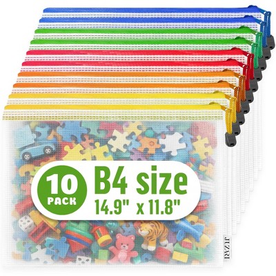 Narwey 10 Pack Large Mesh Zipper Pouch B4 (12x15in) - Game Bags for Board Zip Plastic Mesh Bags for Toys & Playroom