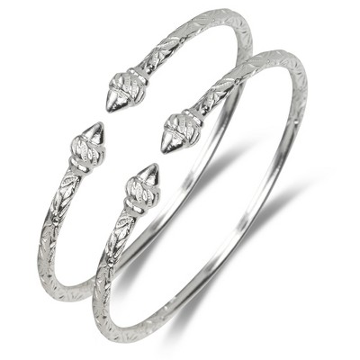 Better Jewelry Grape Bunch Ends .925 Sterling Silver West Indian Bangles, 1 pair