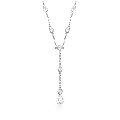 Ross-Simons 2.70 ct. t.w. CZ Station Lariat Drop Necklace in Sterling Silver Size 16