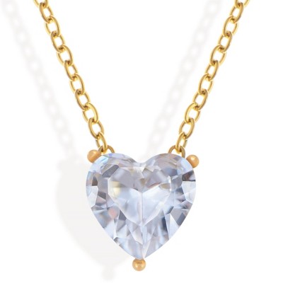 ELYA Women's Polished Cubic Zirconia Engraved Love Heart Steel Necklace - 17"