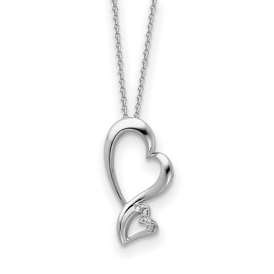 Black Bow Jewelry Rhodium Plated Sterling Silver & CZ Protected Heart Necklace, 18 Inch