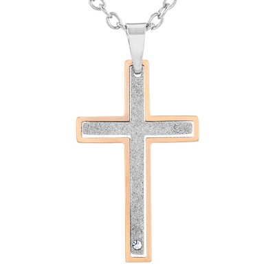 Black Bow Jewelry Stainless Steel & Black CZ Brushed & Polished Cross Necklace, 24 Inch