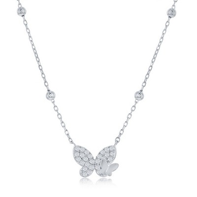 Bella Silver Sterling Silver, Open Butterfly CZ Necklace - Rose Gold Plated - Rose - 16+2 Inch