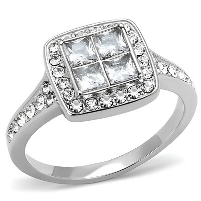 Slickblue Women's Clear Synthetic CZ Ring, Stainless Steel, Polished Finish, No Plating, Size 5-8