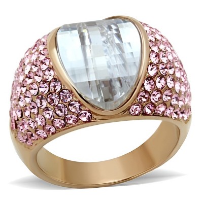 Slickblue Rose Gold Stainless Steel Ring for Women, Octagon Shape, Clear Crystal Detail, Lightweight Band, Sizes 5-10