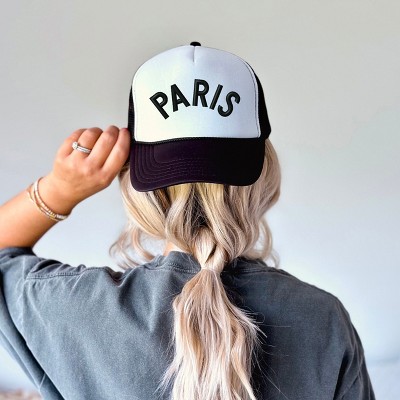 Simply Sage Market Embroidered Paris Arched Foam Trucker Hat - One size fits most - White/Black