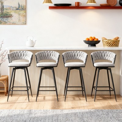 ORRD 4 Pcs Rotating Bar Stools, Retro Green Breathable Cotton Linen Cushions, Black Spray-painted Iron Frame, Ideal for Restaurants & Bars