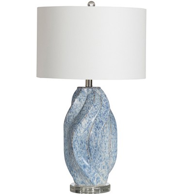 Possini Euro Design Modern Table Lamps 28.5" Tall Set of 2 Light Sky Blue Fluted Glass White Drum Shade for Living Room Bedroom Office Family