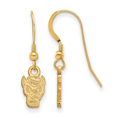 Black Bow Jewelry 14k Yellow Gold Plated Sterling Silver North Carolina State Wolfpack NCAA Extra Small Dangle Earrings