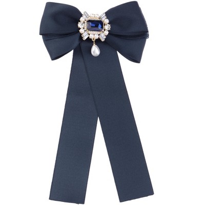 INSPIRE CHIC Women's Ribbon Brooch Elegant Bowtie Rhinestone Bow Ties for Uniform Dress