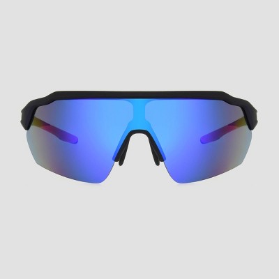 Men's Blade Rubberized Sport Sunglasses with Mirrored Lenses - All In Motion™ Blue: Scratch-Resistant, UV Protection, Recycled Plastic Frame