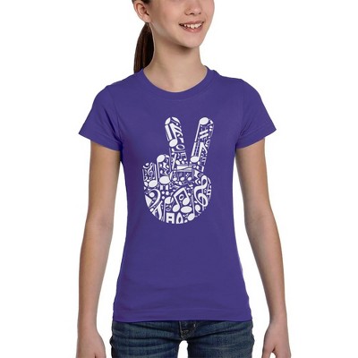 LA Pop Art Peace Finger Notes - Girl's Word Art T-Shirt