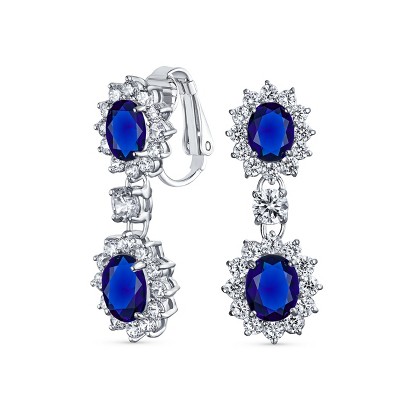 Bling Jewelry Crown Halo Pave Cubic Zirconia CZ Drop Dangling Oval Chandelier Clip On Earrings Statement Non-Pierced
