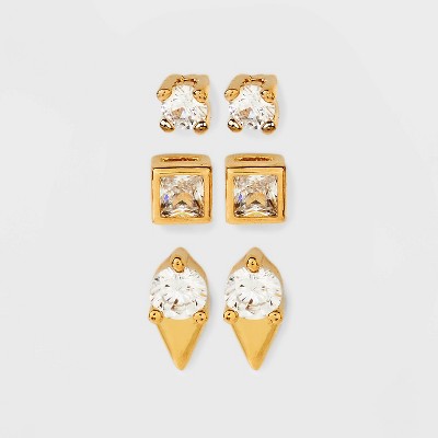 14K Gold Plated Cubic Zirconia Trio Stud Earring Set 3pc - A New Day™ Gold: Nickel-Free, Polished Finish, Gift Box Included