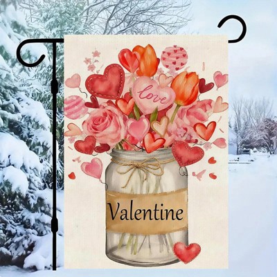Valentines Day Floral Mason Jar Garden Flag 12x18 Inch 1-Sided for Outside Welcome Burlap