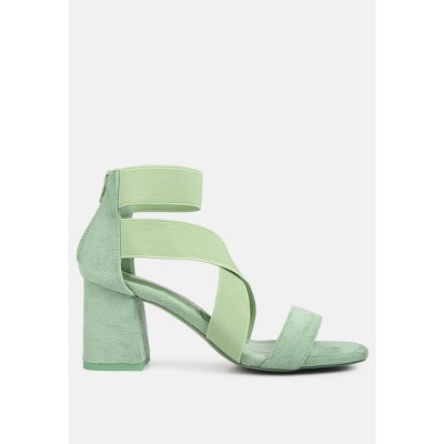 Elastic Strappy Block Heel Sandals